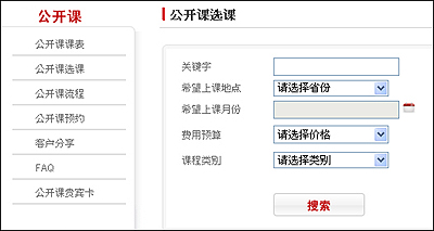 1.用戶可以線上根據課程名稱、開課時間、開課地點及課程價格範圍 等關鍵字查詢感興趣的課程。